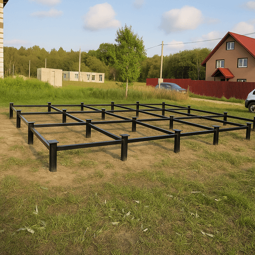 На сваи устанавливаются оголовки, монтируется обвязка из швеллера или бруса. Это обеспечивает равномерное распределение нагрузки.